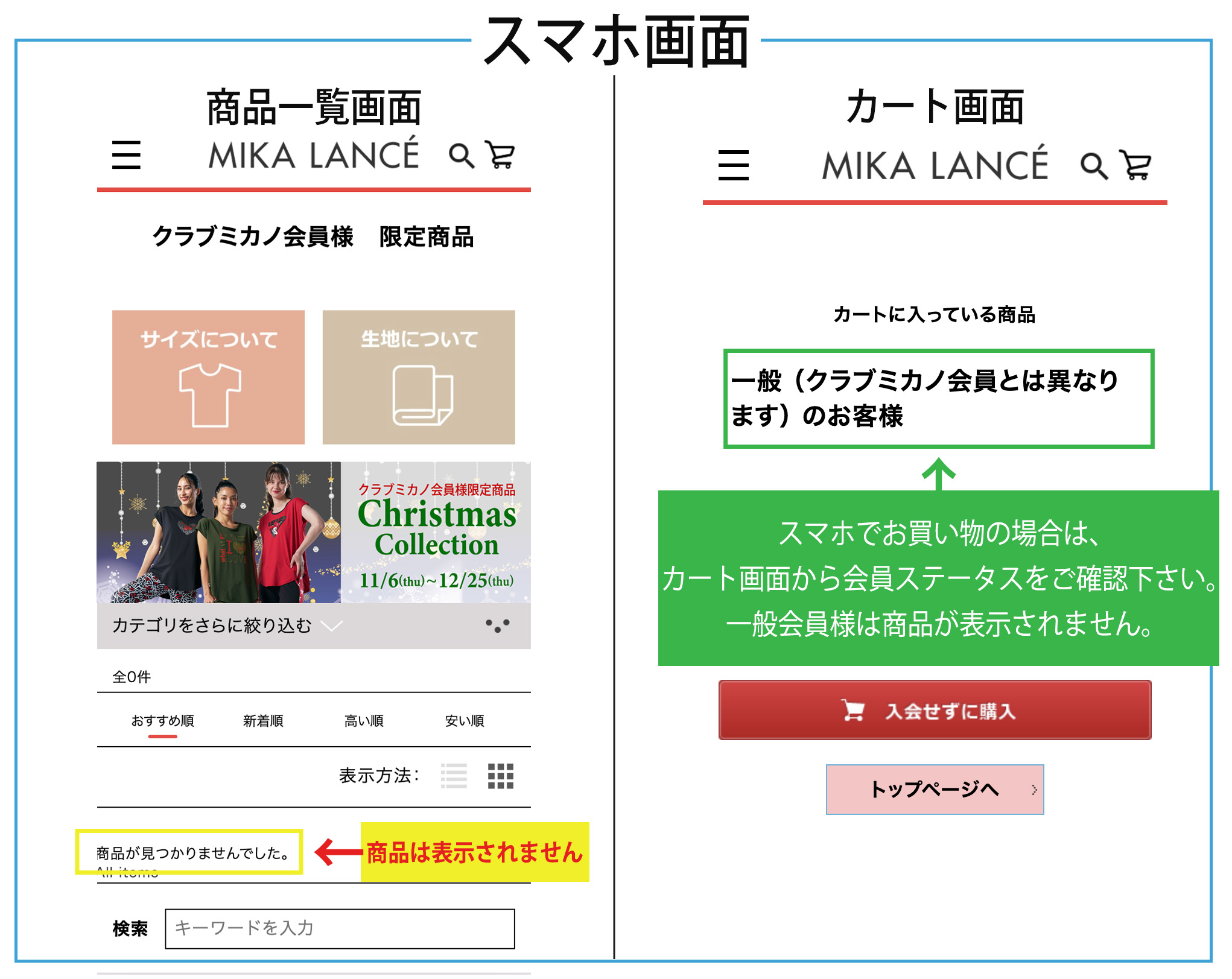 ※スマホでお買い物の場合は、カート画面で「クラブミカノ会員様」と表示されている事をご確認下さい。