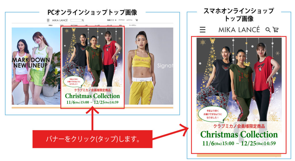 ②オンラインショップのトップ画面からバナーをクリックします。