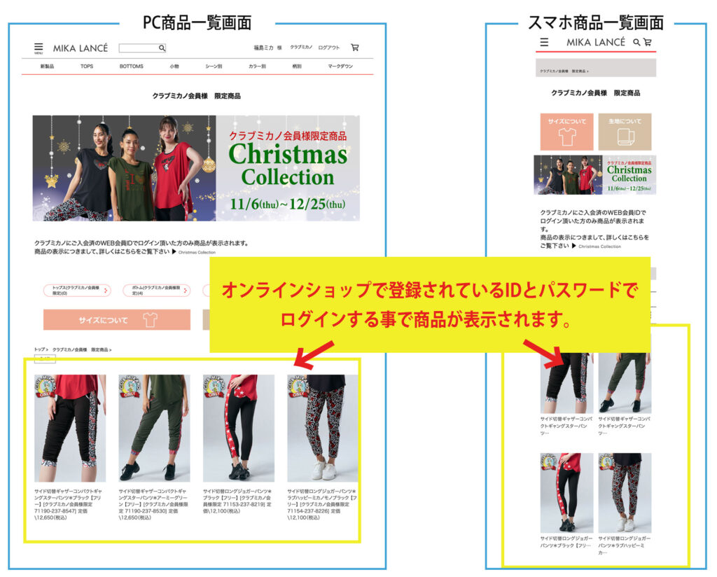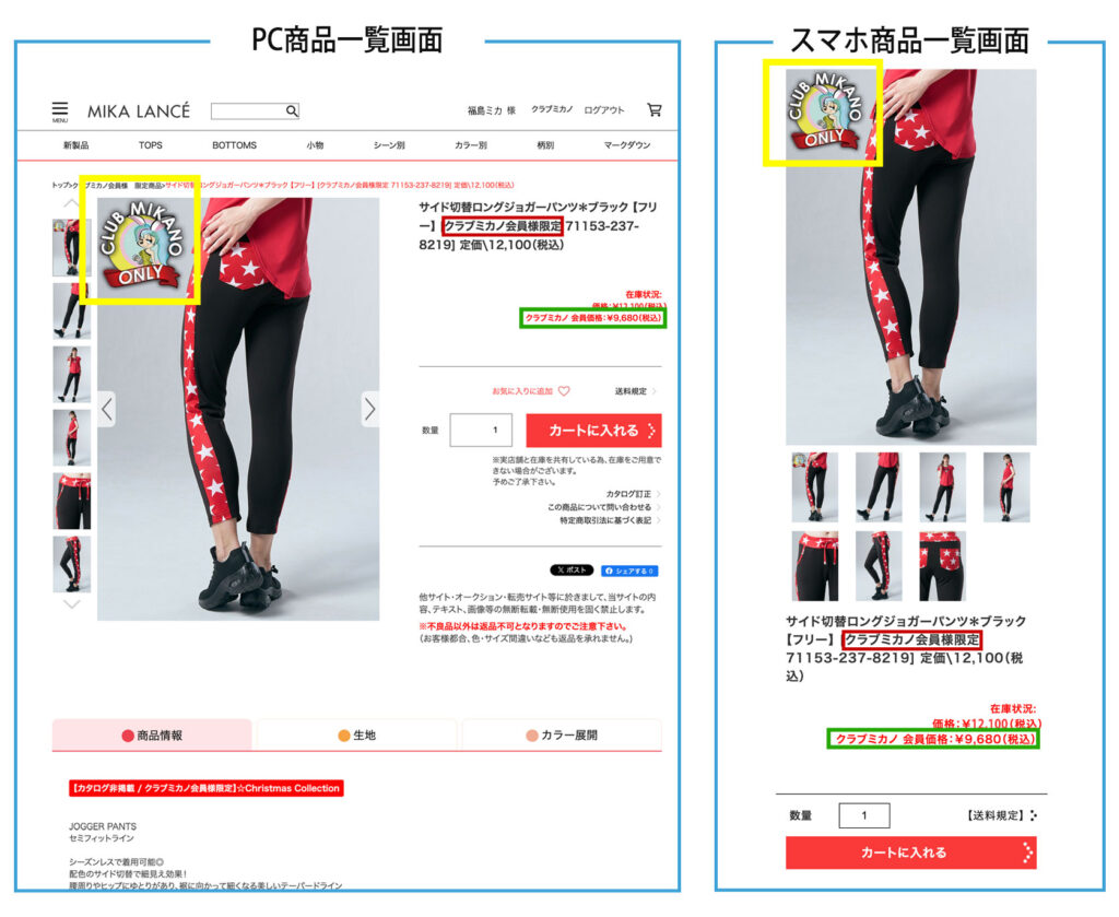※対象商品には「クラブミカノ会員様限定」の文言が入ります。(下記画像の赤線)